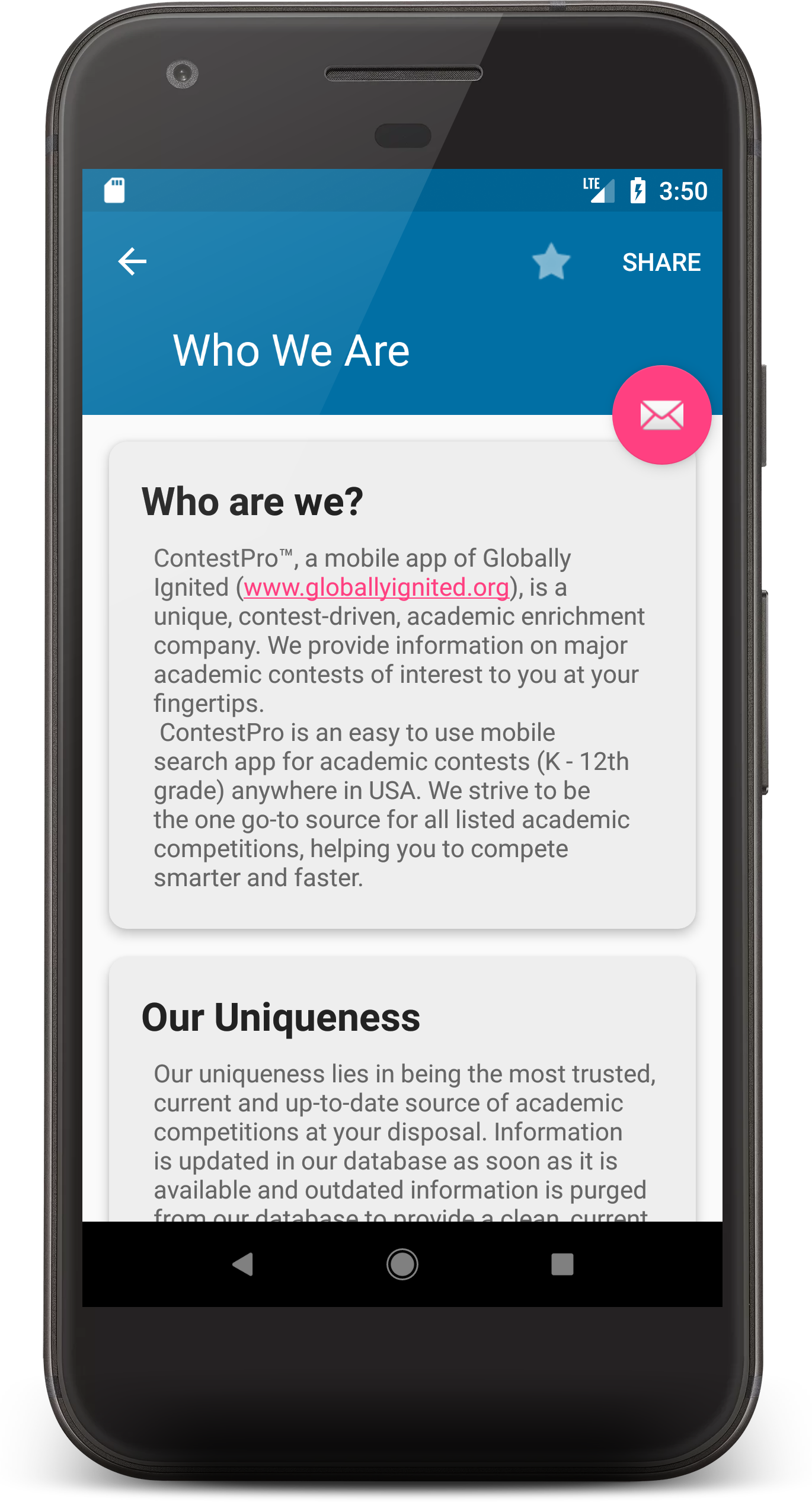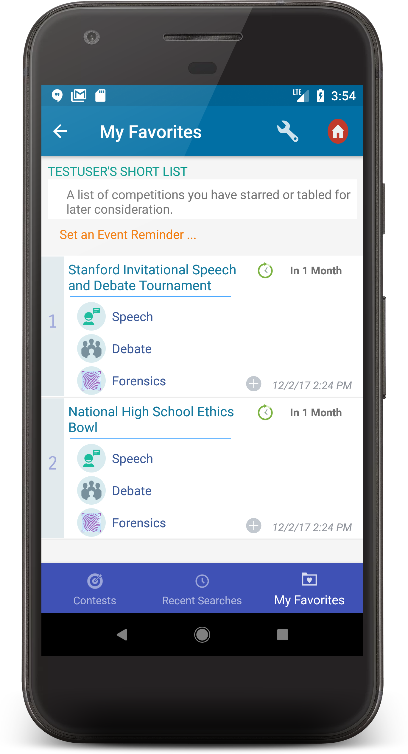Set reminders for your favorite contests so you can watch out and get notified for when that final registration deadline is looming! Set your goals high, and the app ensures its always within arm's reach.
